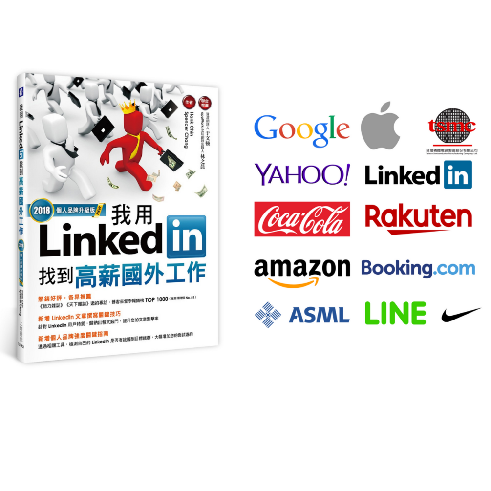 而「我用LinkedIn找到高薪國外工作」也是華語世界中第一本的LinkedIn主題書,現在則是許多華語世界中許多LinkedIn工作坊或演講時,必定會參考(甚至當限量好禮)的書籍。